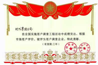 時代集團公司榮獲“全國用戶滿意企業”稱號