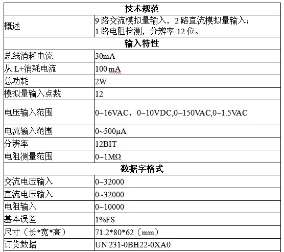 2012年8月,備受期待的UniMAT億維“三相交流電及漏電監(jiān)測(cè)模塊”終于閃耀面市,其訂貨號(hào)為:UN231-0BH22-0XA0。 三相交流電及漏電監(jiān)測(cè)模塊是UN200系列PLC的擴(kuò)展模塊,可以用來(lái)測(cè)量單相交流電或者三相交流電的電壓和電流,且?guī)в新╇婋娮铚y(cè)量功能,并附加兩路直流電壓測(cè)量功能。配合CPU模塊的運(yùn)算和控制,可以實(shí)現(xiàn)過(guò)壓、欠壓、過(guò)載、短路、漏電、三相不平衡保護(hù)等功能;能夠?qū)﹄娋W(wǎng)絕緣電阻進(jìn)行監(jiān)測(cè);具有零序電壓和零序電流采集功能。
