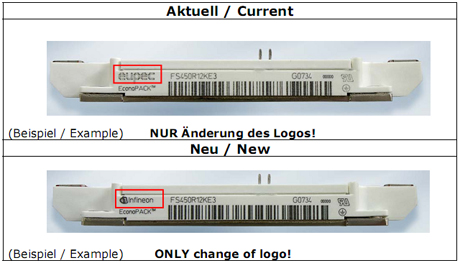 關于EUPEC商標更改為Infineon字樣的通知