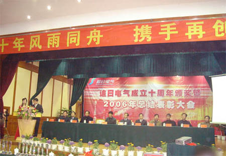 導語:近日,追日電氣成立十周年慶典暨2007年總結表彰大會在城市名人酒店隆重舉行