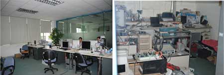 現(xiàn)在我可要重點(diǎn)談?wù)勂諅鞯难邪l(fā)中心了。它占據(jù)了另一層樓面的1/2位置,可見公司的重視程度,當(dāng)我路過其中一間緊閉的房時,透過玻璃門,可以看到里面堆得滿滿的資料,其中還一張小小的簡易床和一雙鞋,當(dāng)我疑惑地問起時,普傳的人員笑著給我介紹說這是總工的辦公室。這可是一個對工作極其投入的人,有時到了關(guān)鍵時期,連吃住都是在公司的,我想也應(yīng)該是一個非常嚴(yán)肅的人吧?可當(dāng)我有機(jī)會目睹時卻是出乎我意料的年輕。我不禁想到普傳公司的張海杰總經(jīng)理曾經(jīng)說過的話,他說希望公司上下都能有80后(80年代后出生的人群)的心態(tài)——激情、向上、充滿活力與創(chuàng)想。在研發(fā)實(shí)驗(yàn)室里,除了高檔的DSP開發(fā)裝置、變頻器試驗(yàn)系統(tǒng)、新研制的樣機(jī)、國外技術(shù)資料外,我見到了那位在生產(chǎn)線實(shí)習(xí)了兩年的人員,因?yàn)樗诤苊β档毓ぷ髦?,我就沒有打擾他,但我想這兩年的沉淀對于他來說是非常有益的,只要他理解。