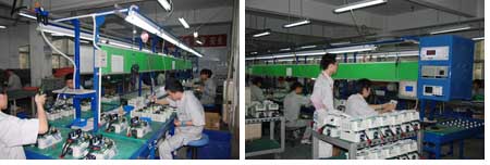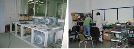 該棟大廈普傳科技占據(jù)了兩層樓面,一層作為研發(fā)中心,一層作為生產(chǎn)區(qū)域。在國產(chǎn)變頻器生產(chǎn)企業(yè)中,普傳的銷售業(yè)績應(yīng)當(dāng)屬于中間偏上,但他對研發(fā)所投入的力量卻是在前列。和所有發(fā)展了幾年較為穩(wěn)定的深圳國產(chǎn)變頻器企業(yè)一樣,普傳也面臨著生產(chǎn)規(guī)模急需擴(kuò)大和區(qū)域受限的問題,一層樓面上,庫房占據(jù)了約1/3,而另外一邊的生產(chǎn)線已經(jīng)可以看出很緊張了。2007年普傳購入了PCB板自動檢測設(shè)備、自動噴漆設(shè)備、基于GPIB的電機(jī)帶載測試設(shè)備電動汽車電機(jī)測試系統(tǒng)等檢測裝備,建立了國內(nèi)領(lǐng)先的A&D實(shí)驗(yàn)中心,更進(jìn)一步保證了產(chǎn)品的可靠性。原來靠人工檢測難免會有誤差,而且耗時,效率低,采用了新的檢測設(shè)備后效率比之前提高了近10倍。