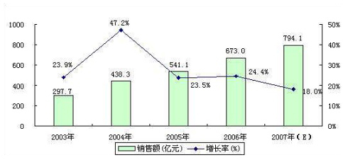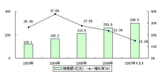 圖1 2003-2007年中國功率器件市場規模[/align]