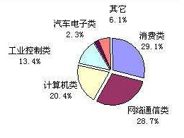 電源管理芯片主要應用于計算機、網絡通信、消費電子和工業控制等領域,此外,汽車電子領域雖然所占市場份額較小,但卻是發展最快的領域。從未來的發展來看,汽車電子領域仍將是發展最快的領域,其市場份額在未來幾年將快速提高,此外,網絡通信也將在3G等應用的帶動下保持快速的發展,其市場份額也將穩步提高,消費電子、計算機和工業控制領域的發展則會相對穩定。
