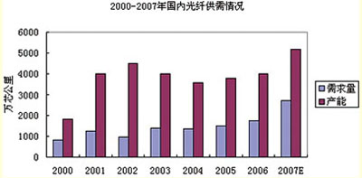 圖 1 2000~2007年國內光纖供需情況 [/align]
