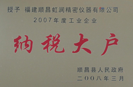 導語:虹潤公司被當地政府授予“2007年度工業企業納稅大戶”榮譽稱號,這是虹潤公司自2002年以來連續六年被當地政府授予“納稅大戶”的榮譽稱號。