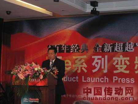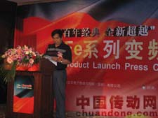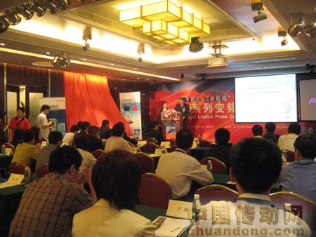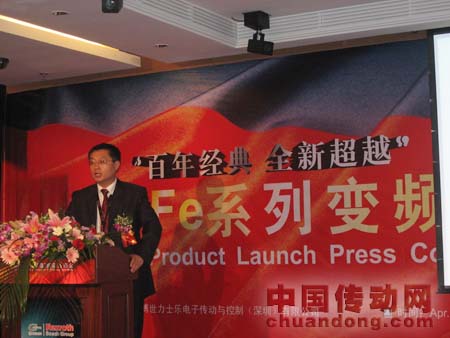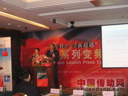 稍后總經理莫畏發表了簡短的講話,他介紹說Fe系列變頻器分為通用G型和專用于風機水泵的P型,目前推出的是0。75-37KW的G型變頻器,2008年底將完成P型和G型45-115KW變頻器的設計、制造和上市工作。而兩天之后公司還將召開FC系列矢量控制型變頻器的研討會,該系列變頻器將于2009年推向市場。Fe系列變頻器的上市將是博世力士樂公司進入變頻器領域的一個里程碑。最后,莫總向所有BRCE的合作伙伴的支持表示了感謝。