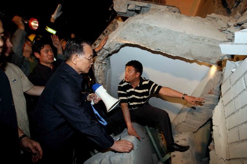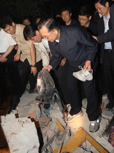 導語:溫家寶抵達都江堰市指揮抗震救災工作