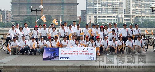 在讀書會之后,開始了別開生面的騎自行車活動。40余人環繞風景美麗的二沙島參加了一場輕松自由、充滿活力的自行車騎游活動,這是為了紀念研華成立25周年特別推出的"研華全球自行車車旅"。大家跟隨著領隊車,著裝統一的自行車隊依次駛出,沿著二沙島、美麗的珠江邊,一路旗幟飄動,笑聲不斷,組成了一道別有特色的研華風景線。