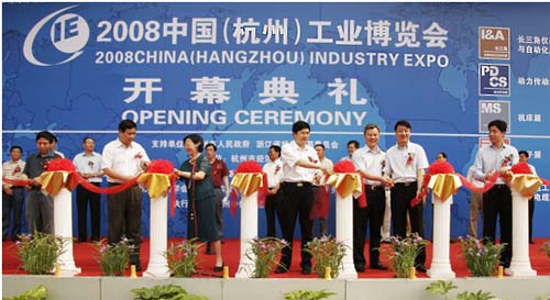 導語:中控參加2008中國(杭州)工業博覽會,中控科技集團董事長褚健先生參加了剪彩儀式