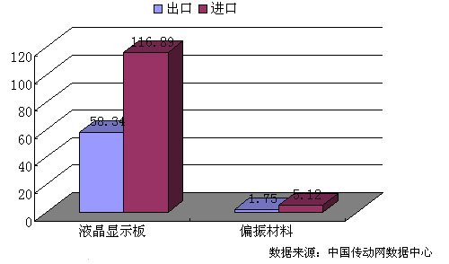 重點產品出口數量和金額:第一季度,液晶顯示板出口金額為58.34億美元,同比增長55.9%,進口金額為116.89億美元,同比增長52.9%;按摩器具出口金額為2.18億美元,同比增長39.7%;偏振材料制的片及板出口金額為1.75億美元,同比增長89.9%,進口金額為5.12億美元,同比增長75.5%。