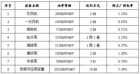 9、 對(duì)電力行業(yè)機(jī)組主輔機(jī)設(shè)備的變頻技術(shù)適用性研究表明:每臺(tái)機(jī)組當(dāng)中主要有七類設(shè)備可以實(shí)現(xiàn)變頻應(yīng)用。以一臺(tái)300MW機(jī)組為例,適用于進(jìn)行變頻節(jié)能應(yīng)用的設(shè)備統(tǒng)計(jì)情況如下表所示。這些設(shè)備的節(jié)能降耗是發(fā)電機(jī)組主輔機(jī)實(shí)施節(jié)能的主要途徑,成為一個(gè)系統(tǒng)工程;是對(duì)整個(gè)機(jī)組運(yùn)行優(yōu)化、實(shí)現(xiàn)經(jīng)濟(jì)性運(yùn)行的系統(tǒng)項(xiàng)目,而不再是單臺(tái)設(shè)備改造的問題。