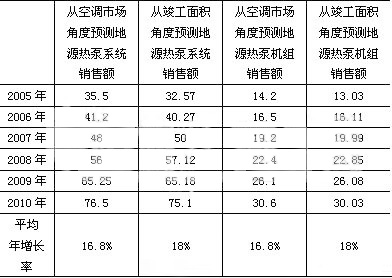 導語:采用兩種預測角度得出的2005-2010年地源熱泵技術在中國暖通市場銷售額預測值基本相同。