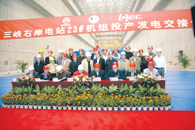 導(dǎo)語:三峽右岸電站國產(chǎn)化700兆瓦機(jī)組———23號機(jī)組移交三峽電廠運行管理并正式投入商業(yè)運行