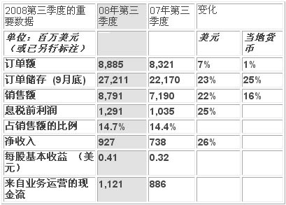 導語:ABB 2008年第三季度銷售額、息稅前利潤、凈收入和現金流均實現了兩位數增長。