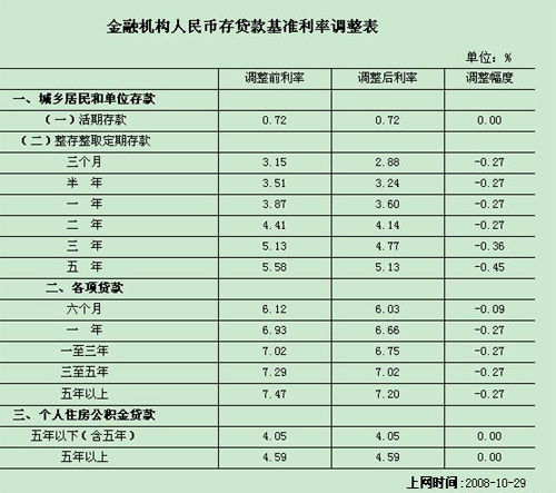 導(dǎo)語:從2008年10月30日起下調(diào)金融機構(gòu)人民幣存貸款基準(zhǔn)利率