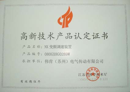 導語:偉肯(蘇州)電氣傳動有限公司榮獲江蘇省科學技術廳頒發的高新技術產品認定證書
