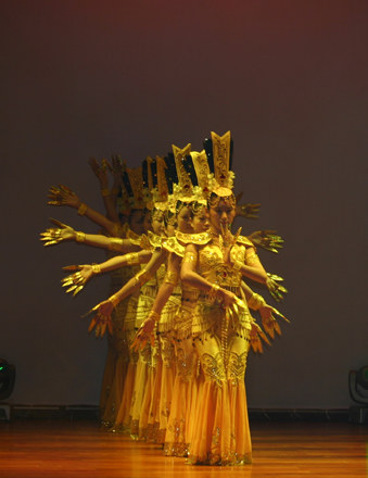 最后,八位青春靚麗的新時(shí)達(dá)舞蹈團(tuán)員,表演了精心排練的《千手觀音》,答謝各位蒞臨嘉賓。