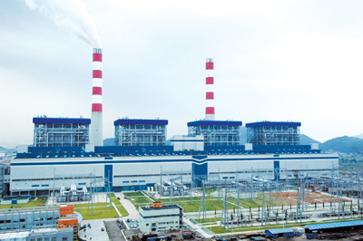安裝我國第一臺引進技術自行生產的超超臨界1000MW機組的華能浙江玉環電廠主廠房。