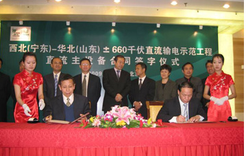 導語:3月12日,由國家電網公司組織的西北(寧東)-華北(山東)±660千伏直流輸電示范工程直流主設備合同簽字儀式在京隆重舉行。