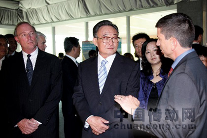 當(dāng)?shù)貢r(shí)間9月8日下午,正在美國(guó)訪問(wèn)的全國(guó)人大常委會(huì)委員長(zhǎng)吳邦國(guó)也來(lái)到了亞利桑那州坦佩(Tempe)市“第一太陽(yáng)能”公司總部,會(huì)見(jiàn)了該公司董事長(zhǎng)麥克·埃亨(Michael·J·Ahearn)。吳邦國(guó)表示中國(guó)正在強(qiáng)調(diào)要大力發(fā)展