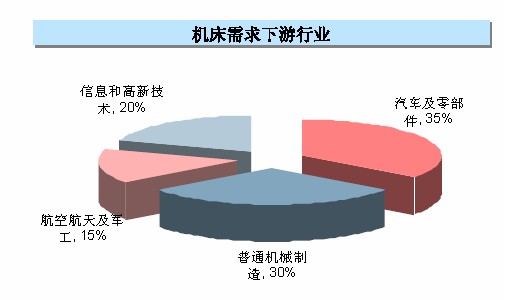 汽車行業是機床行業的大用戶, 每年的需求約占機床行業訂貨量的, 因此汽車行業的發展對機床行業的發展影響很大。汽車行業大批量零部件加工以自動生產線為主, 用戶主要需求是加工自動線、沖壓線、焊接線、噴涂線、鑄造線裝配線等自動化程度高的生產線。對單臺設備的加工涉及機床的覆蓋面很廣, 包括車、銑、鉆、撞、磨、功絲、齒輪加工等幾乎所有的機床產品, 如發動機缸體加工需要大型加工中心和數控銑鑊床, 齒輪加工需要硬齒面加工機床。總的來說, 汽車及零配件行業需求高效、高可靠性、高自動化的數控機床。汽車行業是機床行業的大用戶, 每年的需求約占機床行業訂貨量的, 因此汽車行業的發展對機床行業的發展影響很大。汽車行業大批量零部件加工以自動生產線為主, 用戶主要需求是加工自動線、沖壓線、焊接線、噴涂線、鑄造線裝配線等自動化程度高的生產線。對單臺設備的加工涉及機床的覆蓋面很廣, 包括車、銑、鉆、撞、磨、功絲、齒輪加工等幾乎所有的床產品, 如發動機缸體加工需要大型加工中心和數控銑鑊床, 齒輪加工需要硬齒面加工機床。總的來說, 汽車及零配件行業需求高效、高可靠性、高自動化的數控機床。