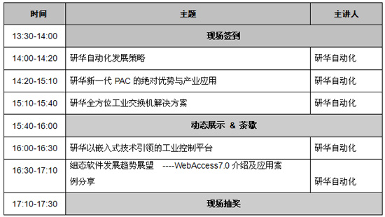 導語:在本次研討會上,您還可以一睹研華全新的產品線與最新的高科技產品,如工業交換機系列、工業視頻監控系列、WebAccess組態軟件以及新一代PAC(可編程自動化控制器)等