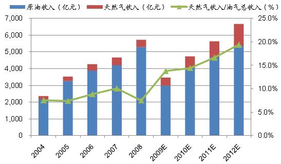 導語:中國石油2008 年天然氣收入僅占上游油氣總收入的7%,主要原因是現在天然氣價格偏低;2009年由于上游原油實現價格走低,我們預計中石油2009年天然氣收入占上游油氣總收入的比重將突破10%。