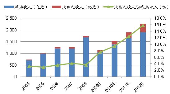 導語:中國石化2008 年天然氣收入占上游油氣總收入的比重不到4%,主要原因也是現在天然氣價格偏低;2009年由于上游原油實現價格走低,我們預計中石化2009年天然氣收入占上游油氣總收入的比重將超過7%。
