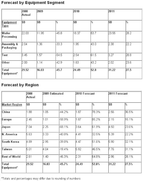 導語:在2008年設備市場經歷31%的下滑之后,2009年進一步縮水46%。然而預計明年市場將反彈53%至245億美元,2011年進一步增長28%至312億美元