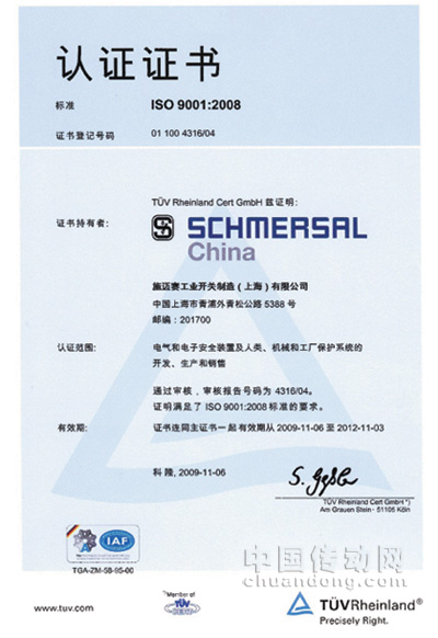 導(dǎo)語:經(jīng)過中國質(zhì)量認(rèn)證中心專家為期三天的認(rèn)真細(xì)致的審核,施邁賽工業(yè)開關(guān)制造(上海)有限公司順利通過ISO9001:2000國際質(zhì)量體系的認(rèn)證復(fù)評