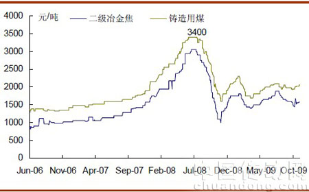 圖 1:境內二級冶金焦和鑄造用煤價格走勢(0601-091127)