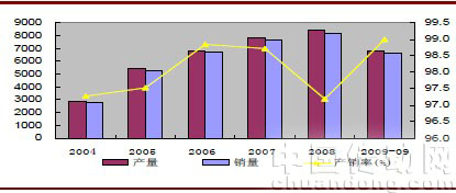 1-9月份累計產量6738.42萬噸、銷售6670.40萬噸,產銷率達到98.99%,創近年來最好水平;產品庫存也一改往年逐季增加的慣性而出現減少的現象。