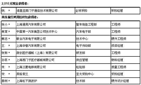 以下是第一批中獎名單,并已于12月底通過展會官方電子通訊向業界通知。
