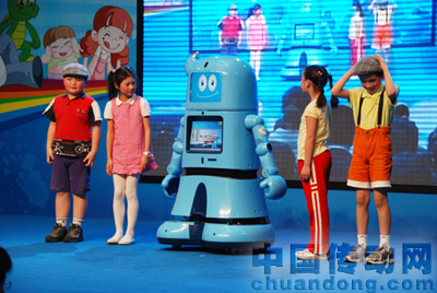 接著,由中控股份公司研發中心主任賴曉健的女兒等4位小朋友登臺與海寶機器人共舞,伴隨著音樂,海寶機器人時而舉舉手,時而轉轉頭,時而扭扭腰,跳得比小朋友還認真呢。海寶機器人以他可愛的形象和“多才多藝”征服了所有觀眾,成為全場的焦點。