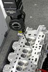 在測量汽車氣缸頭的應(yīng)用中也取得了同樣令人稱奇的結(jié)果,在該應(yīng)用中,對12個(gè)閥門座進(jìn)行檢測,并在12個(gè)導(dǎo)孔上分別進(jìn)行三次圓周掃描。閥門座掃描是在400 mm/sec的速度進(jìn)行的,而閥門導(dǎo)孔掃描的速度為50 mm/sec,整個(gè)測量時(shí)間只用了3分42秒。與原先用三軸系統(tǒng)掃描的29分13秒相比,為加工商提高了690%的效率。