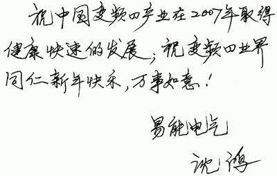 易能目前已經有了EDS800、1000、1100、2000、2800、2860、2080、5000等多個系列幾十種的產品供應市場;在全國已設立如北京、山東、沈陽、杭州、無錫、武漢、佛山、成都、福建、廣州等10個辦事處,在不斷拓展國內市場的同時,易能在06年6月還組建了國際貿易部,積極開發海外市場;規模上從04年創辦,公司只有幾個人,發展到今天的80余人, 06年的營業額比05年增長50%,易能正在快步地向前邁進!