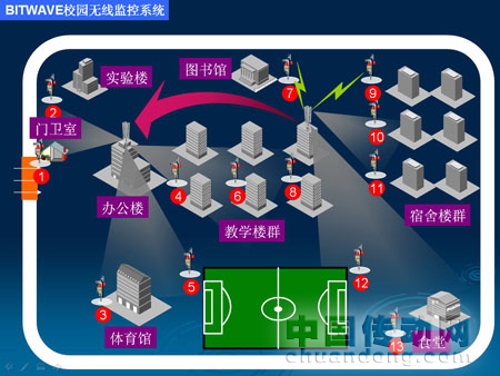 為了預(yù)防、震懾校園犯罪,減少財產(chǎn)損失,保障校區(qū)學(xué)生宿舍的人身安全,完善學(xué)校安全防范體系、提高校區(qū)整體防控能力,用先進的科技產(chǎn)品和技術(shù)建設(shè)校園安防系統(tǒng)被提上日程,視頻監(jiān)控?zé)o疑是最直接有效的方式。事實上,在目前校園的安全系統(tǒng)中,視頻監(jiān)控系統(tǒng)的建設(shè)比例并不高,很多中小學(xué)和幼兒園的監(jiān)控系統(tǒng)尚待建設(shè)中。基于此,專注于視頻監(jiān)控的專業(yè)無線傳輸品牌——BITWAVE,采用當前最成熟的微波通訊產(chǎn)品——無線網(wǎng)橋,推出了先進的高清校園無線視頻監(jiān)控系統(tǒng),可以快速高效地搭建一套先進的高清無線監(jiān)控系統(tǒng),以滿足校園安全的實際應(yīng)用,這也是配合各級管理部門對校園安保的有力措施,并大大提供破案率,同時對犯罪分子起到震懾作用。