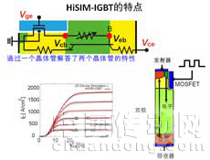 廣島大學從2005年開始就一直與豐田和豐田中央研究所共同研究普通車載用IGBT(insulated gate bipolartransistor)的模型。IGBT組合使用了雙極晶體管和MOSFET,而聯合研究小組則推導出可不分離這兩個晶體管,而整體模擬IGBT的模型公式,從而開發出了HiSIM-IGBT.制成一體化模型是為了精確表達兩個晶體管之間的相互作用。