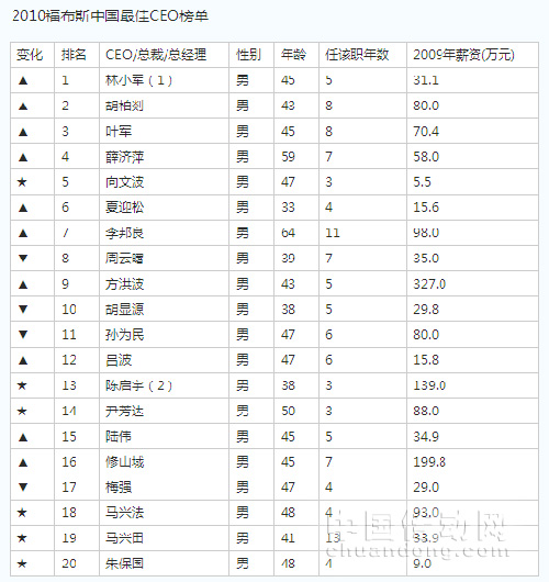 導(dǎo)語:昨天,福布斯中文版通過對最近3年連任的國內(nèi)A股非國有上市公司CEO、總裁、總經(jīng)理及其領(lǐng)導(dǎo)的公司進(jìn)行研究