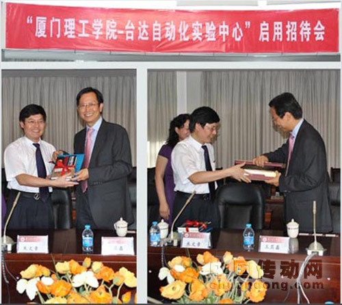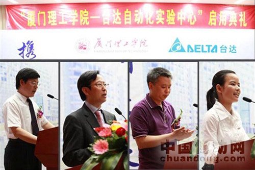 當天,廈門市委常委、副市長詹滄洲先生親臨了啟動儀式的現場,與廈門理工學院副校長朱文章教授、中達電通股份有限公司總經理王其鑫先生、福建省教育廳港臺辦副主任廖德強、福建省自動化學會副理事長彭俠夫教授出席了揭牌儀式并發表講話,詹副市長指出:開展企校合作、加快人才培養,是推進廈門市經濟和社會發展的重要舉措,市委、市政府歷來高度重視,而本次“廈門理工學院•臺達自動化實驗中心”的落成,更是催進海峽兩岸文化,技術交流的典型。