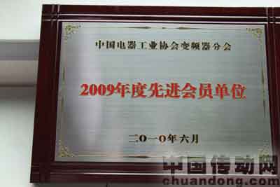 英威騰獲中國電器工業協會變頻器分會2009年度先進會員單位