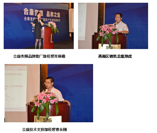 接下來(lái),合康變頻品牌推廣部經(jīng)理肖琳璐、西南區(qū)銷售總監(jiān)鄭虎、技術(shù)支持部經(jīng)理曹永剛分別做了“合康公司的歷史及發(fā)展”、“合康變頻西南部業(yè)績(jī)情況匯報(bào)及服務(wù)承諾”及“合康高壓變頻技術(shù)講解”的主題報(bào)告。與觀眾分享了作為一家專業(yè)研發(fā)、生產(chǎn)、銷售高壓變頻器的高科技企業(yè),北京合康億盛變頻科技股份有限公司近年來(lái)快速成長(zhǎng)為國(guó)內(nèi)高壓變頻器的領(lǐng)先品牌,并于2010年1月20日在深交所正式掛牌上市的輝煌歷程。合康高壓變頻器在四川為代表的西南地區(qū)獲得了廣泛的應(yīng)用,為了更好的答謝和服務(wù)客戶,合康承諾在產(chǎn)品供應(yīng)、技術(shù)支持、產(chǎn)品定制、服務(wù)保障等方面為用戶提供更有競(jìng)爭(zhēng)力的支持和服務(wù)。