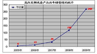 從2005年的試驗(yàn)性項(xiàng)目的實(shí)施,到三年形成規(guī)模銷售,再到持續(xù)每年銷售量以200%以上的速度增長,目前有超過500臺(tái)套的成套產(chǎn)品為客戶提供高壓變頻應(yīng)用領(lǐng)域的生產(chǎn)安全和節(jié)能效益保障。足以證明:高壓變頻應(yīng)用技術(shù)和成套產(chǎn)品的強(qiáng)大生命力和市場活力。