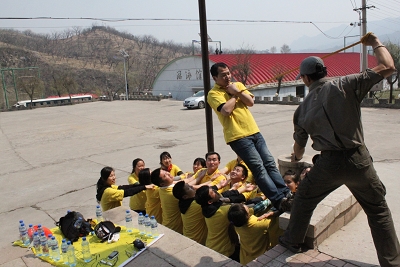 “信任背摔”,其真正的訓練目的決不停留在勇者無畏那么膚淺。當每個人站在2米高的架子上,雙手環抱置于胸前的剎那,撲通撲通的心跳像不信任的退堂鼓,種種惶惑陣陣襲來。正如Super star隊隊長郭紅艷的感悟:“感謝教練,感謝同事,更感謝自己,在那種別無選擇的困境中送來的勇氣。以前一直說不清勇氣是什么,經過了背摔的折磨,我真正體驗了勇氣的價值:它賦予我們的是超越和成就的質感,激發我們的潛能,使軀體擺脫瑣碎和庸常,使發熱的頭腦變得冷靜,使愚笨的人變得聰明,聰明的人變得智慧,智慧的人變得有理性,有了理性,便免致墮入恐懼和無知的陷阱中,便可以向每一次挑戰作出堅決的回響。”