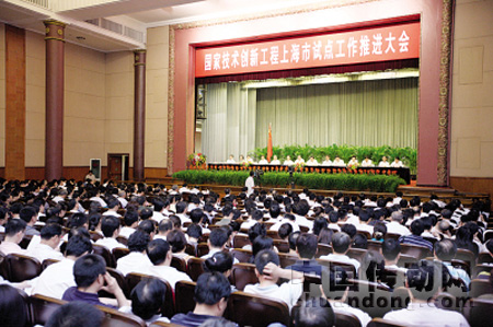 7月30日,國家技術創新工程上海市試點工作推進大會在上海展覽中心舉行。上海市委、市人大、市政府、市政協主要負責同志出席會議,市委副書記、市長韓正主持,中共中央政治局委員、市委書記俞正聲作動員講話,全國政協副主席、科技部部長萬鋼代表國家技術創新工程的共同推進部門講話。會議的召開標志著上海緊抓世博會和“后世博”戰略機遇,以實施技術創新工程為抓手,發揮科技支撐作用,加快轉變經濟發展方式,加足馬力推進創新型國際化大都市的建設。