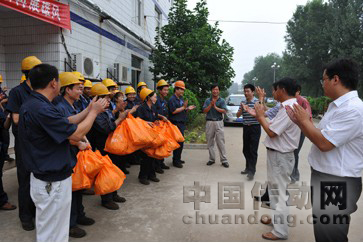 8月3日上午,集團公司黨委副書記、副總裁程利民,工會主席晉國運一行帶著防暑降溫物品(夏桑菊顆粒沖劑、風油精、人丹),親切看望慰問了奮戰在酷暑中的基一線員工。感謝大家為許繼發展做出的貢獻,叮囑員工在高溫天氣里要認真做好安全生產,同時希望各單位干部持續不斷地改善員工的工作環境。集團公司領導的關懷令廣大基層干部員工深受感動,活動現場不斷響起熱烈的掌聲。大家紛紛表示,要以優異成績向許繼建廠40周年獻禮,為許繼第三次創業作出新貢獻!