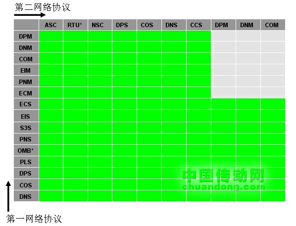 (其中:ASC = ASCII, RTU = Modbus RTU Client/Server, NSC = netSCRIPT, DPM = PROFIBUS DP-Master, DNM = DeviceNet Master, COM = CANopen Master, EIM = Ethernet/IP Master, DPS = PROFIBUS-DP Slave, COS = CANopen Slave, PNM = PROFINET-Master, CCS = CC-Link Slave, CPS = CompoNet Slave, PLS = POWERLINK Slave, DNS = Devicenet Slave, ECS = EtherCAT Slave, EIS = Ethernet/IP Adapter (Slave), PNS = PROFINET IO Device (Slave), OMB = Modbus TCP (OpenModbus), S3S = SERCOSIII Slave)