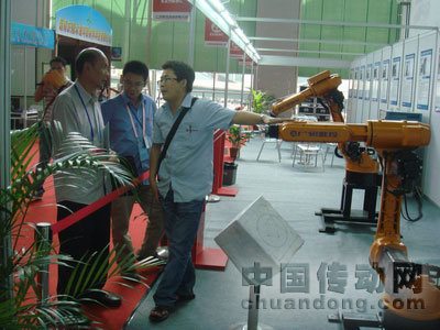 展會現場布置簡潔、大方,兩臺擁有自主知識產權的RB系列工業機器人按照技術人員編寫的程序有條不紊地工作著,這正體現了廣數人的樸實,以及孜孜不倦的敬業精神。RB系列工業機器人是GSK自主研發生產、具有獨立知識產權的最新產品。作為國家科技部863計劃項目之一,GSK成立了機器人工程總部,專業的工程化隊伍、先進的試驗檢測設備儀器和手段,為RB系列工業機器人的可靠性提供了有力保證。該系列的核心功能部件伺服驅動、伺服電機、運動控制系統在我司均已初步實現產業化,這使得我們在開發重載搬運機器人上具有得天獨厚的優勢。GSK將根據用戶的需求設計完整的機器人應用方案,向工廠制造業,特別是汽車產業提供專業的高品質機器人。