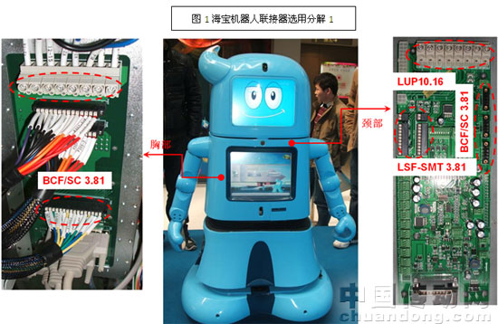 魏德米勒從2009年11月開始,即針對在研發該款機器人時所遇到的難點提供相應的解決方案。該款機器人有以下特點:頭部和四肢可以靈活運動;功能豐富;自我識別和糾錯。靈活運動要求聯接可靠,且需要抗振動;功能豐富意味著實現其功能的控制板很多,板間用于連接信號用的接插件密度很高,由于整個機器人體積有限,所以要求聯接件的體積很小,而且便于接線。